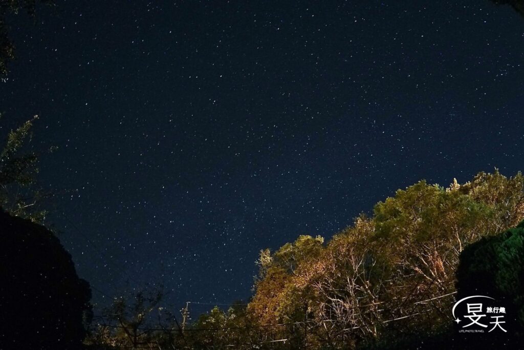 在毫無光害的高山上,夜空中的星星顯得格外繁燦奪目。老闆特地與我們分享他手機裡收藏的銀河美照,可惜這晚銀河羞於露臉,僅餘滿天星斗閃爍。我趕緊拿出帶來的運動相機,在不斷更換方位嘗試,調整了許久,終於成功捕捉到星空的照片。